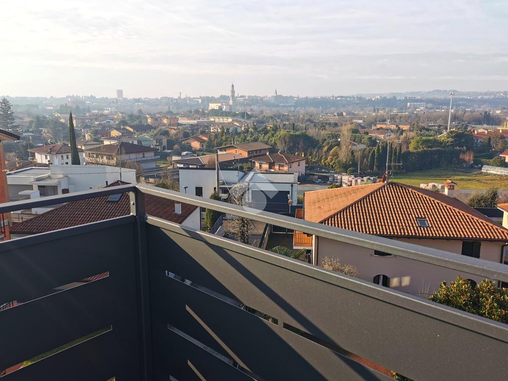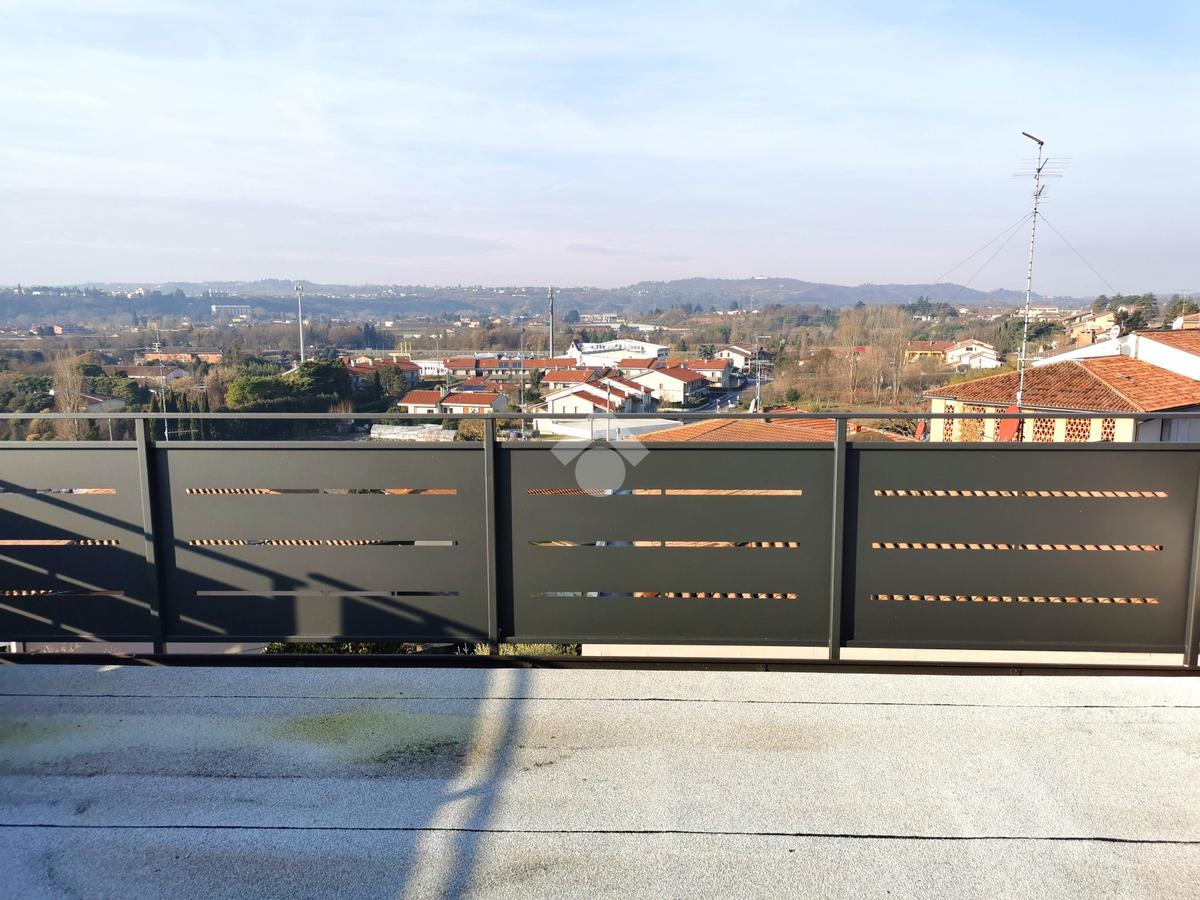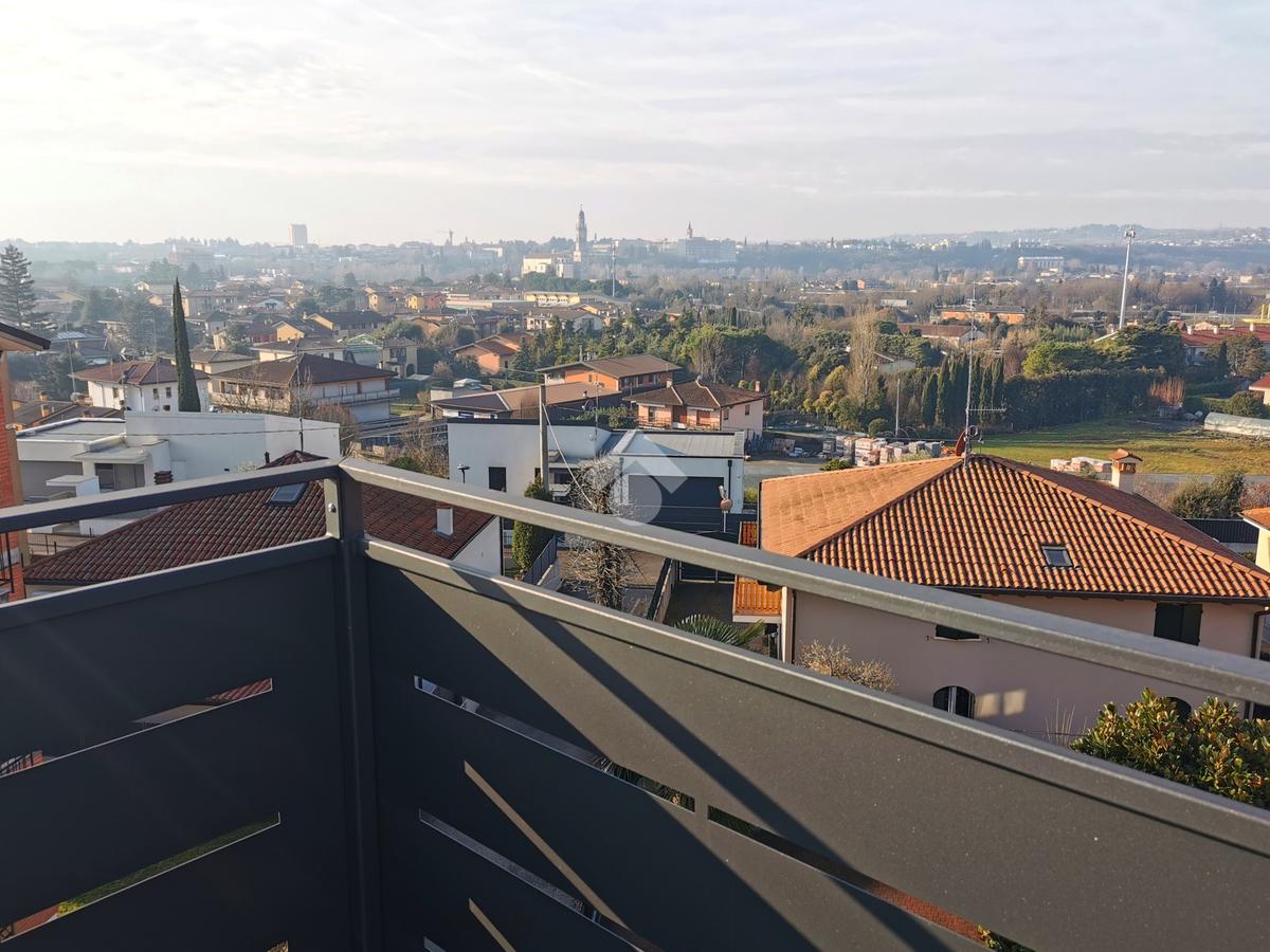 La zona giorno luminosa si apre su un balcone che regala una vista panoramica, ideale per momenti di relax.
