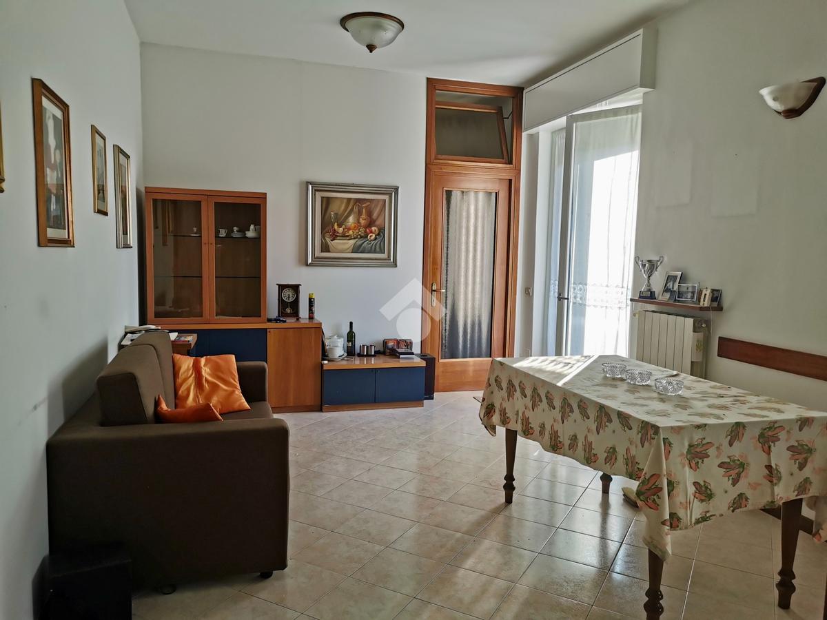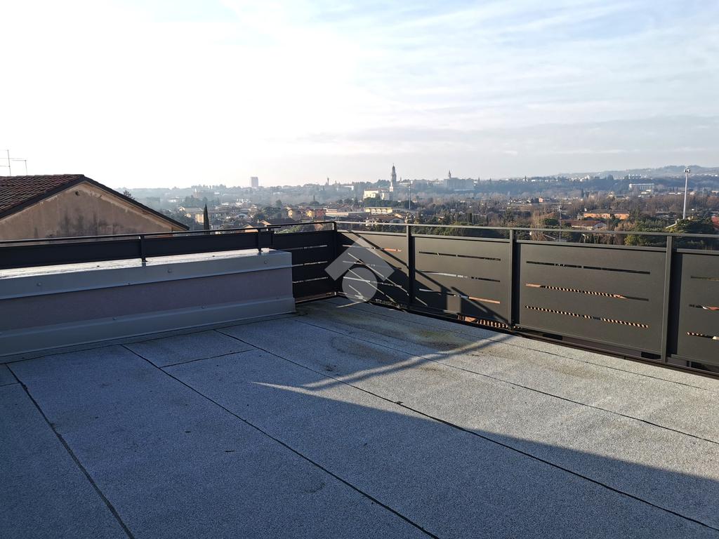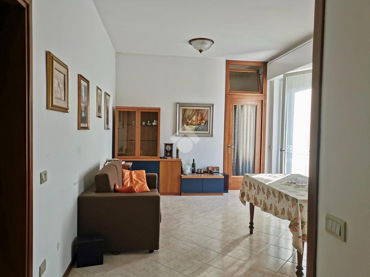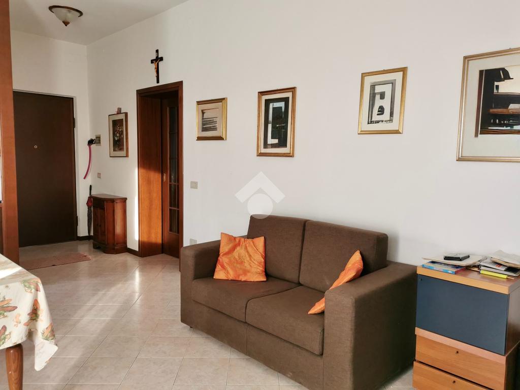 La zona giorno luminosa si apre su un balcone che regala una vista panoramica, ideale per momenti di relax.