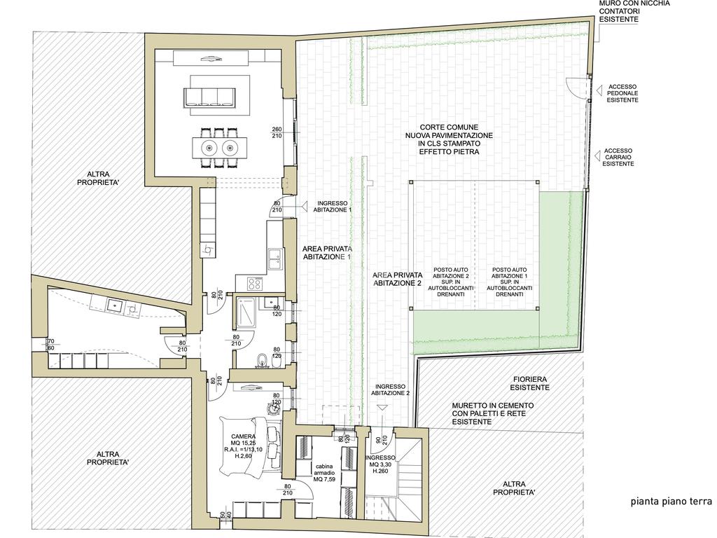 L'abitazione offre una zona giorno luminosa che si affaccia su un cortile privato, ideale per momenti di relax all'aperto, una camera da letto attrezzata con cabina armadio, un'ulteriore stanza versatile, un bagno finestrato con doccia e un posto auto riservato.